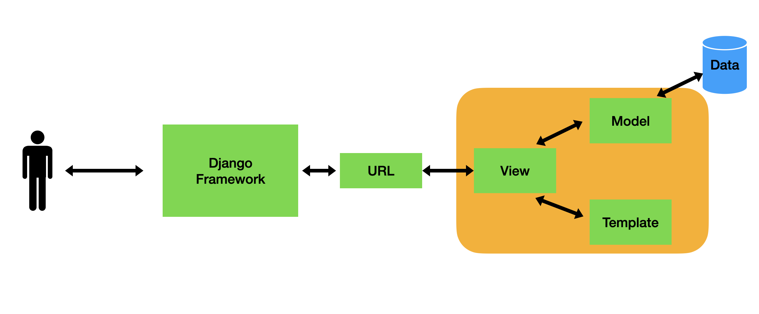 MVT(모델-뷰-템플릿)는 Django가 따르는 아키텍처 패턴입니다. MVC(모델-뷰-컨트롤러) 패턴과 유사하지만 몇 가지 차이점이 있습니다.