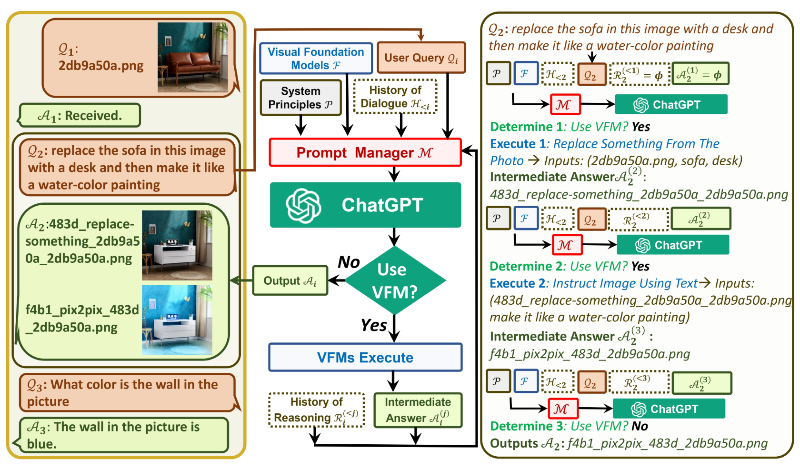 Visual ChatGPT는 채팅 중에 이미지를 주고받을 수 있도록 ChatGPT와 일련의 Visual Foundation Models을 연결합니다.